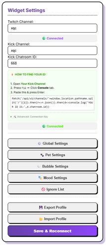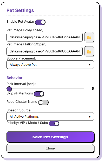 - ๐ค Full 3rd Party Emote Support: PetSpeech automatically handles 7TV, BetterTTV, and FrankerFaceZ emotes for both Twitch AND Kick. Your pet sees what you see!